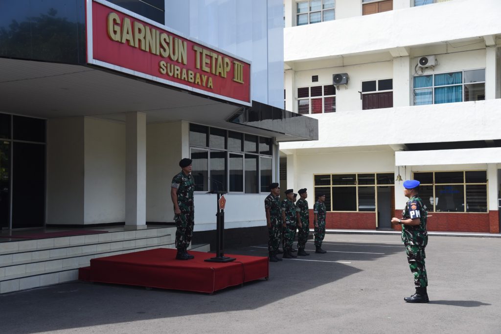 Surabaya – Komando Garnisun Tetap (Kogartap) III/Surabaya menggelar upacara kenaikan pangkat bagi para prajurit, baik dari golongan Perwira Menengah (Pamen), Bintara, maupun Tamtama dan PNS, yang di pimpin langsung Kaskogartap III/Surabaya Brigjen TNI (Mar) Danuri, S.M., bertempat lapangan apel Makogartap III/Surabaya, Jl. Ngemplak 2-4 Surabaya.Rabu (01/10/2025)