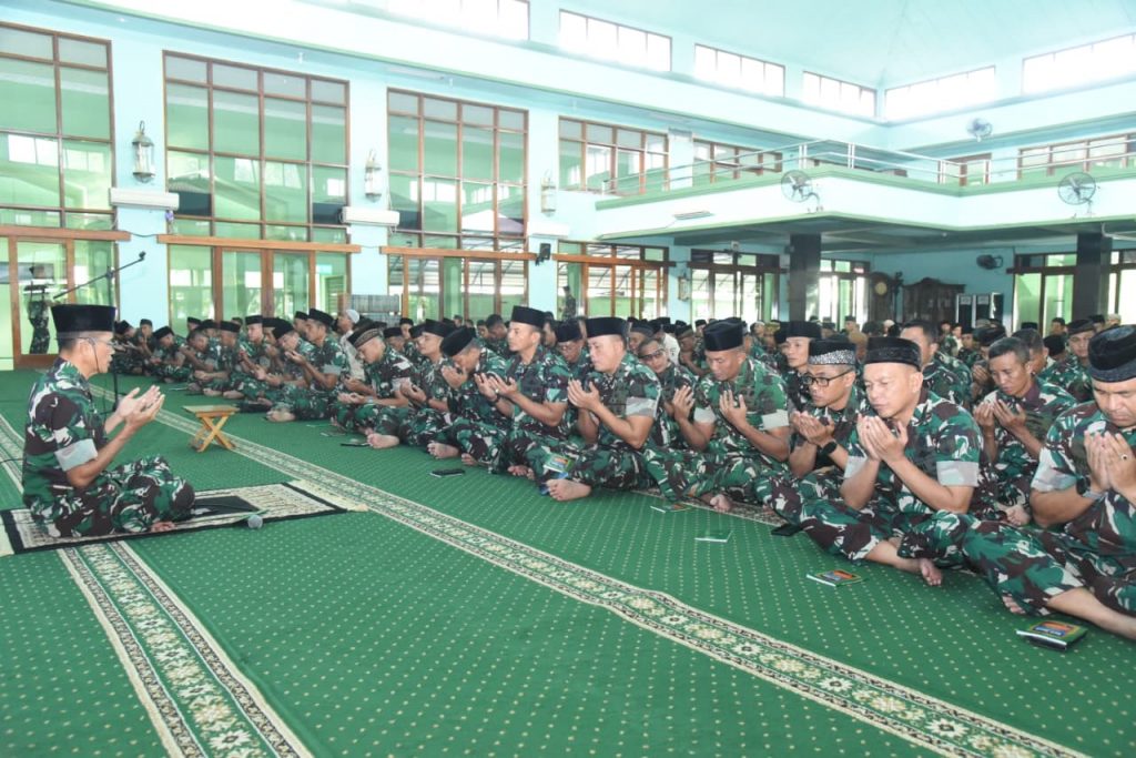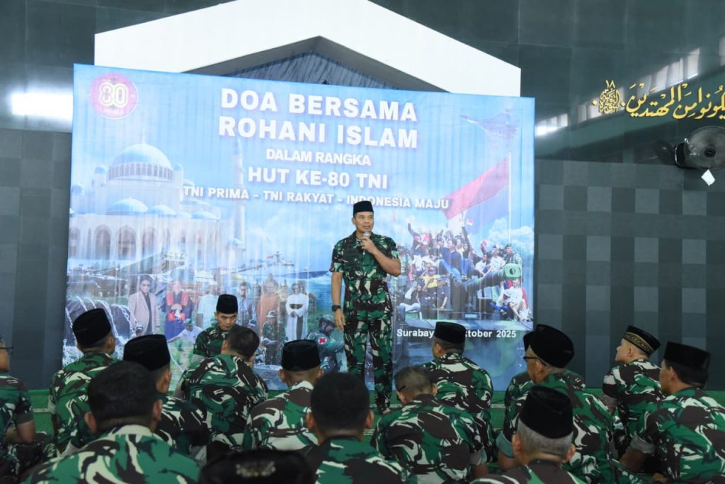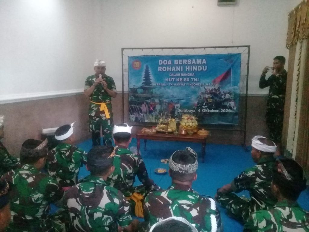 Surabaya-Dalam rangka memperingati Hari Ulang Tahun ke-80 Tentara Nasional Indonesia (TNI), Komando Garnisun Tetap (Kogartap) III/Surabaya menyelenggarakan doa bersama lintas agama yang diikuti prajurit TNI dan PNS rohasi Islam bertempat di di Masjid At Taqwa Kodam V/Brw Jl. Raden Wijaya Surabaya, rohasi Kristen . GKJW, Karangpilang (Protestan), Gereja Paroki Santo Yusuf, Karangpilang (Katolik) dan Indoorsport Trian Sutedi Senaputra, Karangpilang (Hindu) hadir Kaskogartap III/Surabaya Brigjen TNI (Mar) Danuri, S.M., di damping Asops Kogartap III/Surabaya (Kol.Mar Imam Ghazali, M.Tr.,Opla) dan Asmin Kogartap III/Sby (Kol.Inf Hendro Wicaksono, S.I.P). Sabtu (4/10/2025)