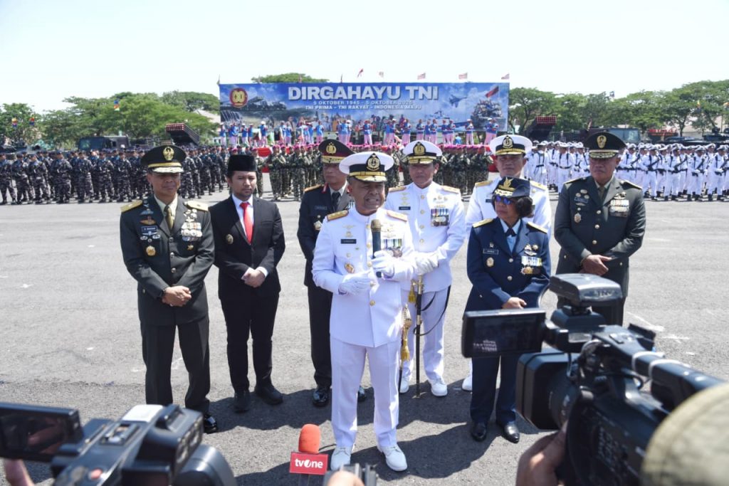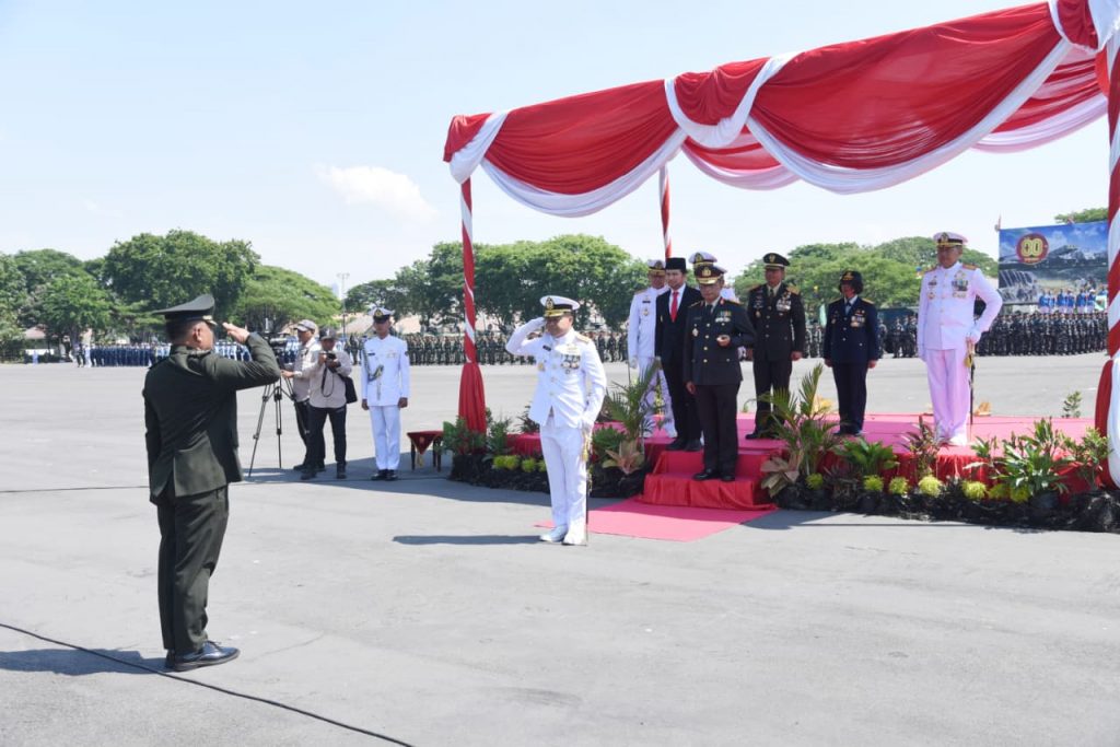 Surabaya – Dalam rangka memperingati Hari Ulang Tahun ke-80 Tentara Nasional Indonesia (TNI), dilaksanakan upacara militer di Lapangan Sutedi Senaputra Karang Pilang, Surabaya, dengan tema TNI Prima -TNI Rakyat- Indonesia Maju, Inspektur Upacara Wakil Komandan Komando Pembinaan Doktrin, Pendidikan dan Latihan TNI Angkatan Laut (Wadan Kodiklatal). Laksda TNI Singgih Sugiarto, S.T.,M.Si. sebagai Komandan Upacara Letkol Czi Hery Kisyanto, S.Hub.Int (Dandenzibang 3/V Madiun) dan Perwira Upacara Letkol Inf Prasetya Hari Karyawan, S.H., M.H. (Kaprot Kogartap III/Sby). Minggu 05 oktober 2025.