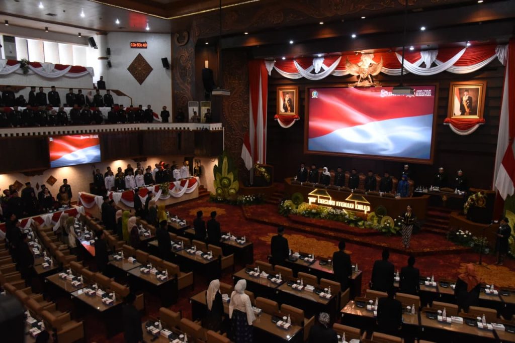 Rapat Paripurna dipimpin langsung oleh Ketua DPRD Provinsi Jawa Timur [Muhammad Musafak], dan dihadiri oleh Gubernur Jawa Timur [Khofifah Indar Parawansa], Wakil Gubernur, Forkopimda Jawa Timur, serta para kepala daerah kabupaten/kota, tokoh masyarakat, akademisi, dan undangan lainnya.