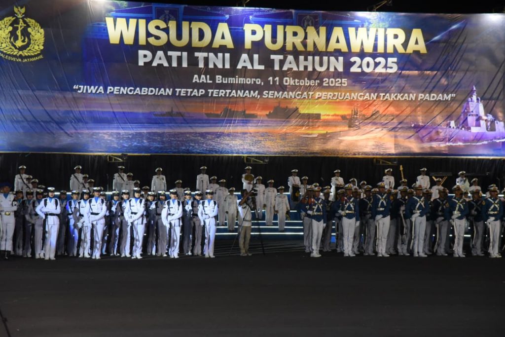 Surabaya — Tentara Nasional Indonesia Angkatan Laut (TNI AL) menggelar acara Wisuda Purna Wira Perwira Tinggi (Pati) TNI AL Tahun 2025 hadir Kaskogartap III/Sby Brigjen TNI (Mar) Danuri, S.M., dalam suasana penuh khidmat dan kebanggaan di Lapangan Laut Arafuru AAL, Acara yang dipimpin langsung oleh Kepala Staf Angkatan Laut (Kasal) Laksamana TNI [Muhammad Ali] tersebut diikuti oleh para Pati TNI AL yang telah memasuki masa purna bakti sebagai bentuk penghargaan dan penghormatan atas dedikasi, loyalitas, serta pengabdian terbaik mereka kepada TNI AL, TNI, bangsa, dan negara.Sabtu (11/10/2025)