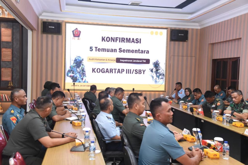 Surabaya, – Komando Garnisun Tetap (Kogartap) III/Surabaya menggelar acara Exit Meeting Tim Audit Itjen TNI Periode IV Tahun 2025 bertempat di Ruang Rapat Makogartap III/Surabaya. Kegiatan tersebut menandai berakhirnya rangkaian kegiatan audit kinerja yang telah dilaksanakan oleh Tim Itjen TNI selama 3 (tiga) hari di jajaran Kogartap III/Surabaya.Rabu (29/10/2025)
