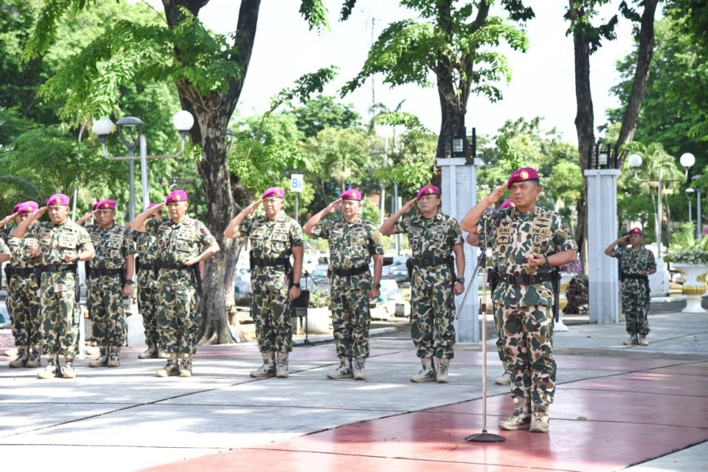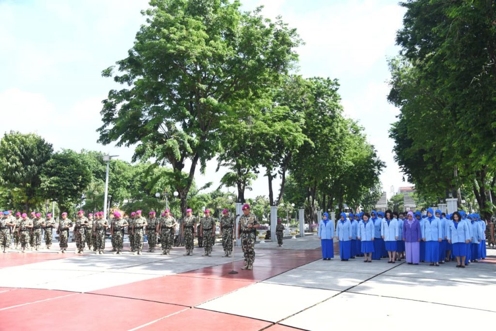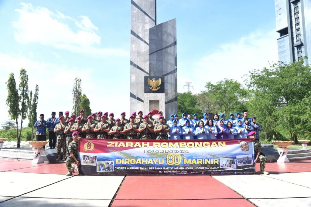 Surabaya – Dalam rangka memperingati Hari Ulang Tahun ke-80 Korps Marinir, Kaskogartap III/Surabaya (Brigjen TNI (Mar) Danuri, S.M) turut hadir dan mengikuti kegiatan Ziarah Rombongan yang dilaksanakan di Taman Makam Pahlawan 10 Nopember Surabaya, Jl. Mayjen Sungkono no 190 Surabaya. Jumat (7/11/2025).