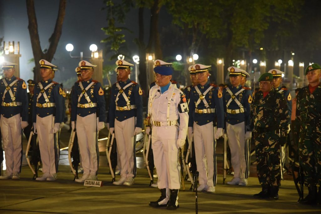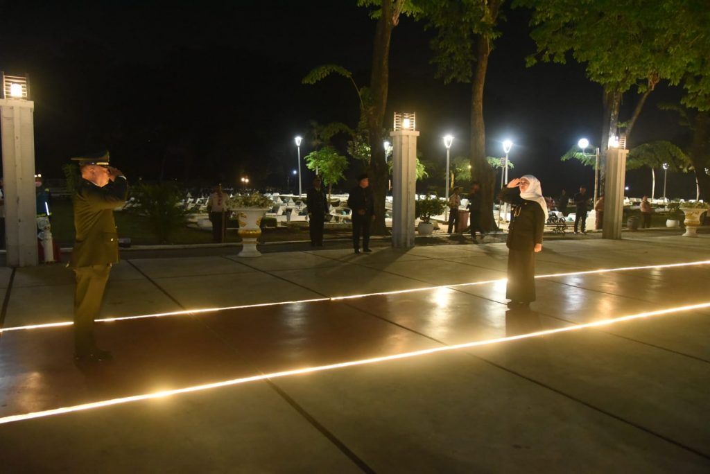 Upacara berlangsung dengan khidmat di bawah suasana penerangan obor dan lilin, sebagai simbol penghormatan atas jasa para pahlawan yang gugur dalam memperjuangkan kemerdekaan bangsa Indonesia.
