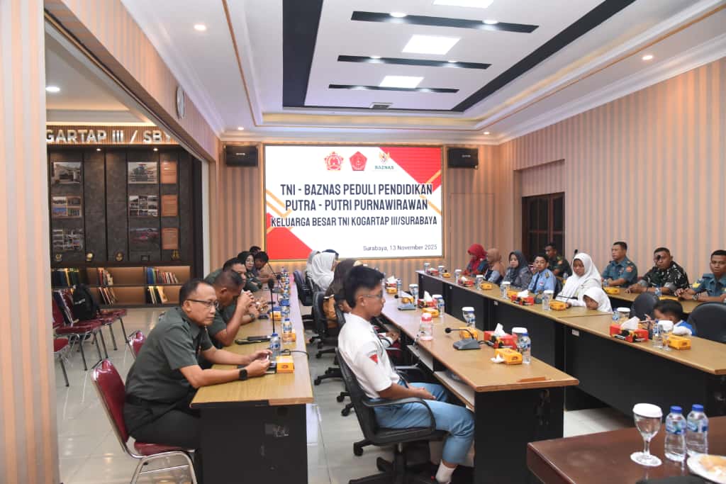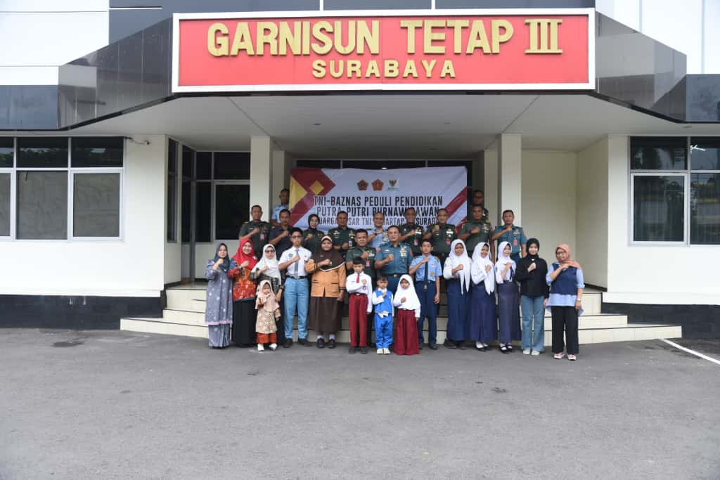Surabaya, –Komando Garnisun Tetap (Kogartap) III/Surabaya menyalurkan bantuan pendidikan kepada anak-anak yatim piatu yang berasal dari keluarga prajurit. Bantuan tersebut berasal dari Unit Pengumpul Zakat (UPZ) Unit Organisasi Mabes TNI sebagai bagian dari program sosial dan kepedulian terhadap dunia pendidikan.Kamis (13/11/2025)