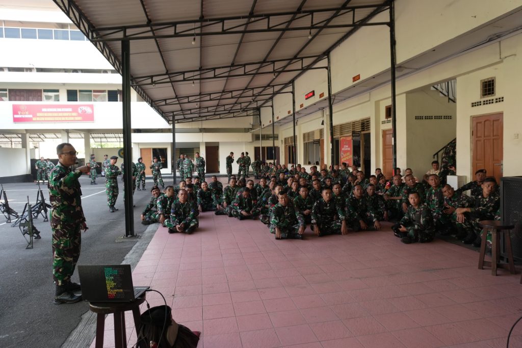 Surabaya – Pembinaan Mental (Bintal) Kogartap III/Surabaya menggelar kegiatan sosialisasi penyembelihan hewan qurban sebagai bentuk pembekalan kepada prajurit dan ASN dalam menyambut perayaan Idul Adha 1447 H. Kegiatan dilaksanakan setelah Upacara 17 an di lingkungan Makogartap III/Surabaya dengan diikuti antusias oleh seluruh prajurit dan ASN Kogartap III/Sby. Senin (20/04/2026)
